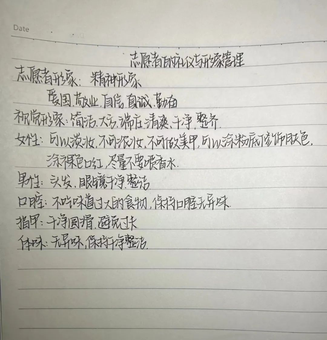 本次活动以志愿者的礼仪与形象管理为主题,从志愿者精神形象、视觉形象、行为形象三大模块,详细讲解志愿者的仪容、仪表、仪态,礼貌行为等,志愿者们认真学习并进行学习笔记分享。此次活动不仅提升了志愿者自身的服务能力和素质,也为推动我院青年志愿服务事业的发展注入了新的动力。