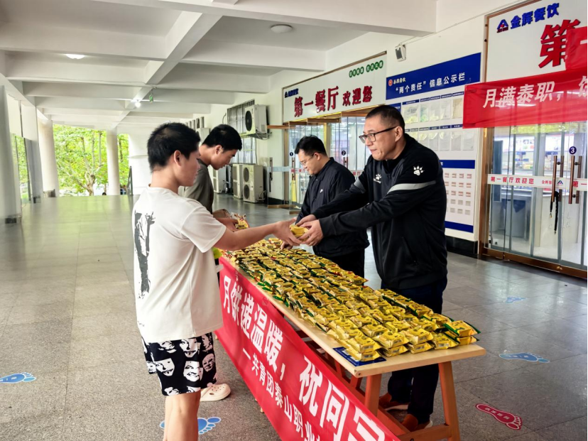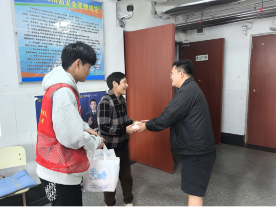 活动最后,为坚守岗位的公寓值班人员送去送上象征“团圆美满”的月饼与节日祝福,致以最诚挚的敬意,让工作人员感受到来自学校的温情。