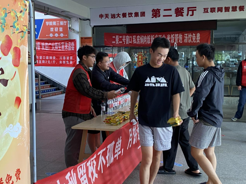 为让留校学子感受到家的温暖,营造欢度中秋佳节的浓厚氛围,10月6日中秋节当天,学校开展“若有温情在,他乡月亦明”中秋活动,将学校的关怀与挂念送到每一位留校学子心里。