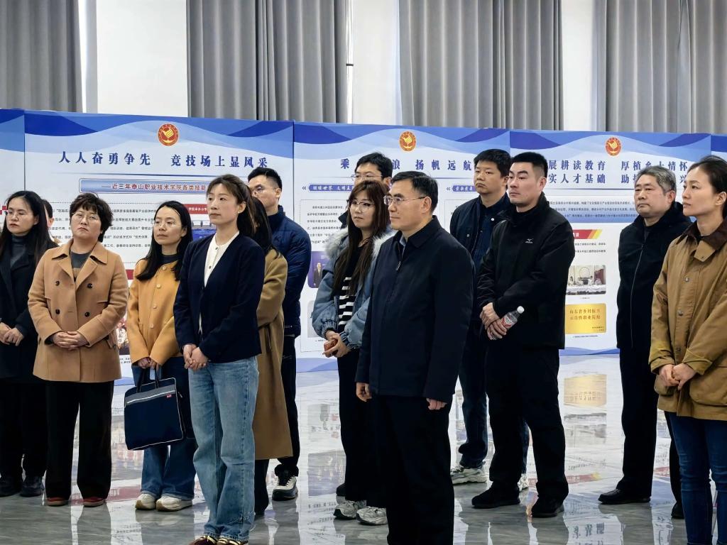 3月12日,共青团泰安市委分工负责同志及相关部室负责同志、驻泰高校团委主要负责同志一行莅临我校,实地调研学校近年来校地融合重要工作成果,听取学校共青团工作汇报。党委委员、副校长陈士兵陪同。