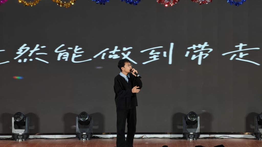 致辞结束后,活力四射的开场舞《what is love》正式拉开晚会序幕。动感的舞步引起全场共鸣,瞬间点燃现场氛围;宋子睿以独特嗓音演唱的《平庸》,完美诠释了平凡与不平凡交织的内心独白;2025级道路与桥梁工程技术2班同学们带来的《当那一天来临》,则用歌声传递出责任与担当的重量。