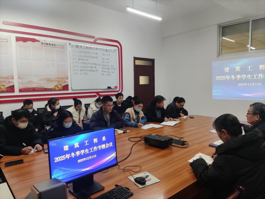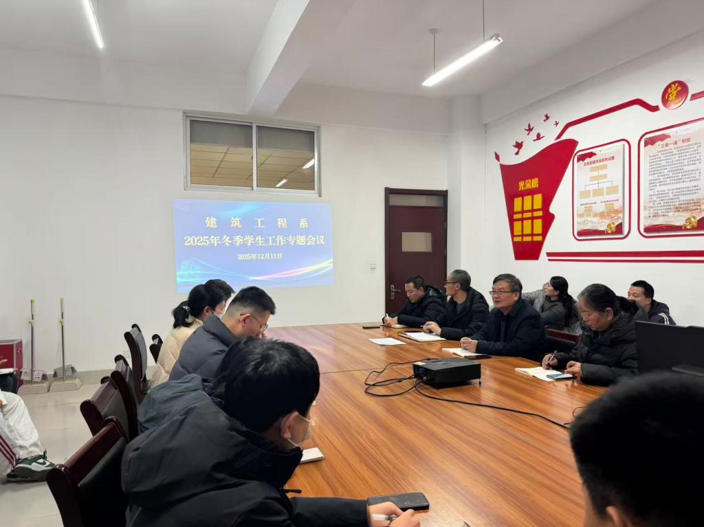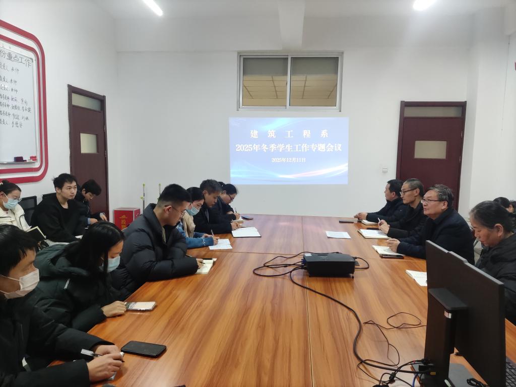 为保障学生安全,优化日常管理服务,2025年12月11日,建筑工程系在行知楼A208召开冬季学生工作专题会议,系党总支书记张子学、主任王桂珍、副主任李德安、教学科科长米帅,以及2023级、2024级、2025级全体班主任及辅导员参加会议。