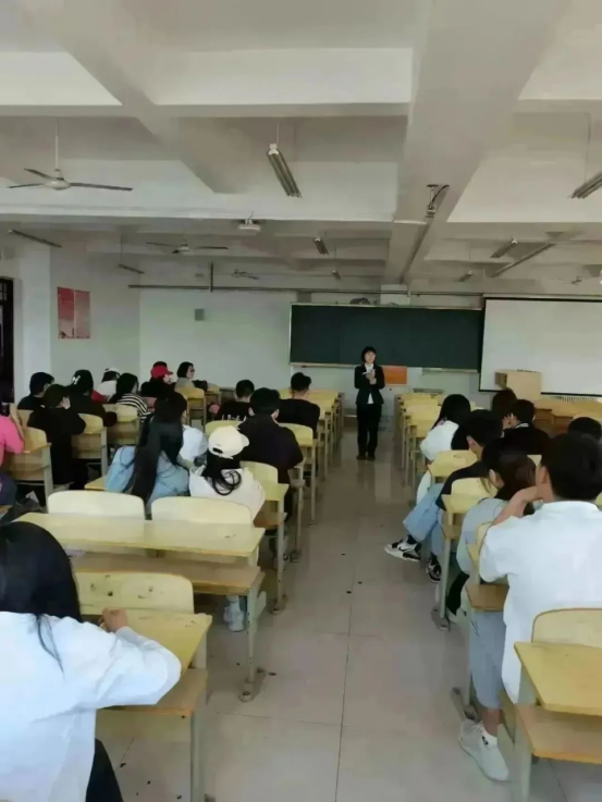 2023年5月10日上午九点,泰安市博物馆分管馆长陶莉,旅游管理科副科长臧敏,岱庙讲解服务中心负责人付民,优秀毕业生代表柳肇洁一同来到泰山职业技术学院旅游系进行宣讲,由旅游系党总支书记薛玉法和辅导员刘钦毅负责接待,面向21级旅游管理专业的71名同学展开一场热烈的宣讲活动。