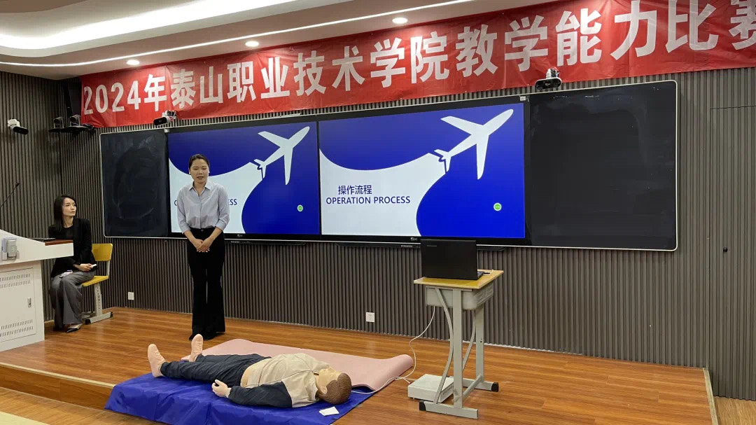 4月2日,泰山职业技术学院在图书馆三楼智慧教室举行2024年教学能力比赛决赛。我系两个教学团队取得佳绩,空中乘务专业由李莎莎、王扬、王琨、祖洪越四位老师组成的教学团队,以课程《民航客舱服务与管理》荣获一等奖,酒店管理与数字化运营专业由刘会会、王德利、李雪皎、梁化美四位教师组成的团队,以课程《酒店前厅运营与管理》荣获二等奖。