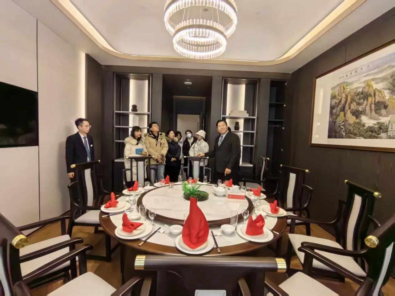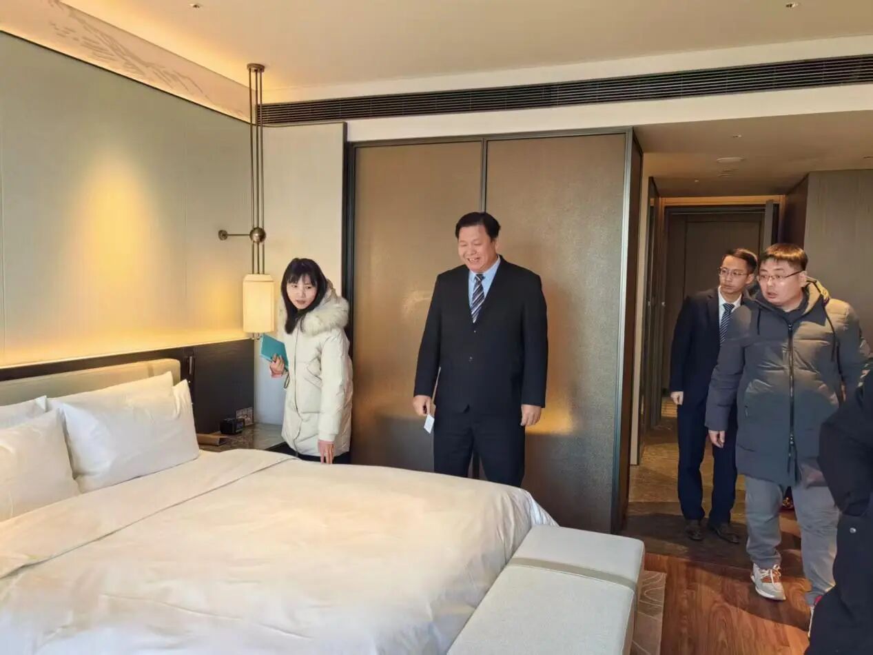 调研组先后走访了酒店的前厅、中西餐厅、客房、会议厅及后厨等核心运营区域。通过近距离观察各岗位工作流程与服务动线,调研团队对酒店规范化的管理机制、人性化的服务设计以及高品质的运营细节有了直观而深入的认识。