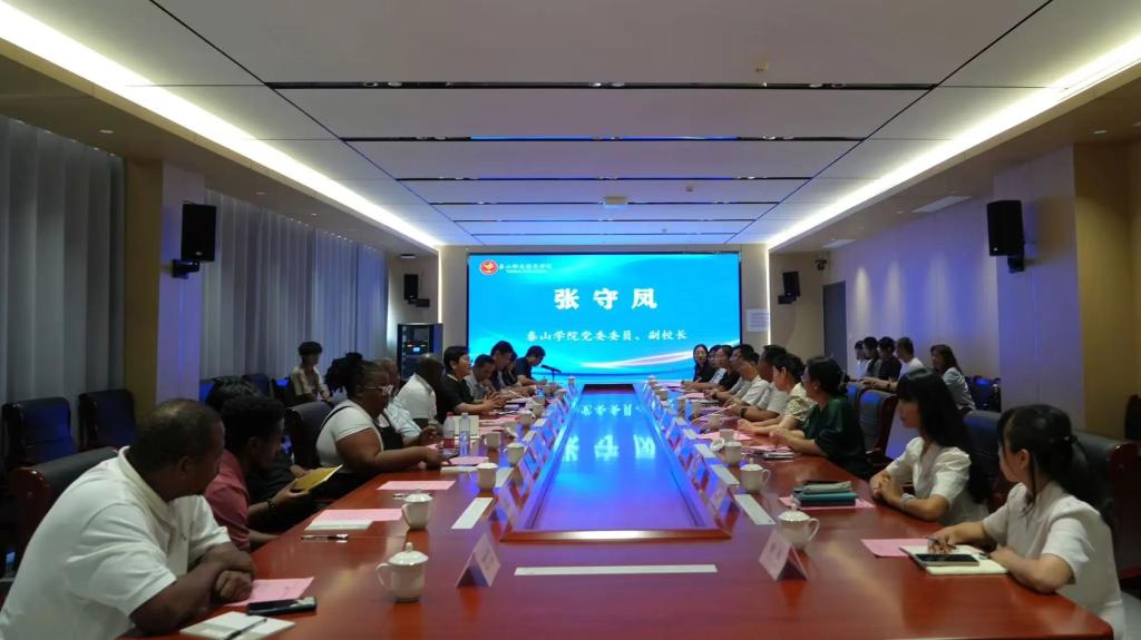 6月17日下午,泰山学院党委委员、副校长张守凤一行6人与多巴哥旅游与酒店管理学院师生7人来我校访问,就国际交流与合作工作及旅游、酒店、烹饪等专业建设进行深入交流。为展现旅游系的专业特色与教学成果,旅游系全体师生精心准备,以饱满的热情和细致的安排迎接来宾,确保此次访问活动圆满成功。
