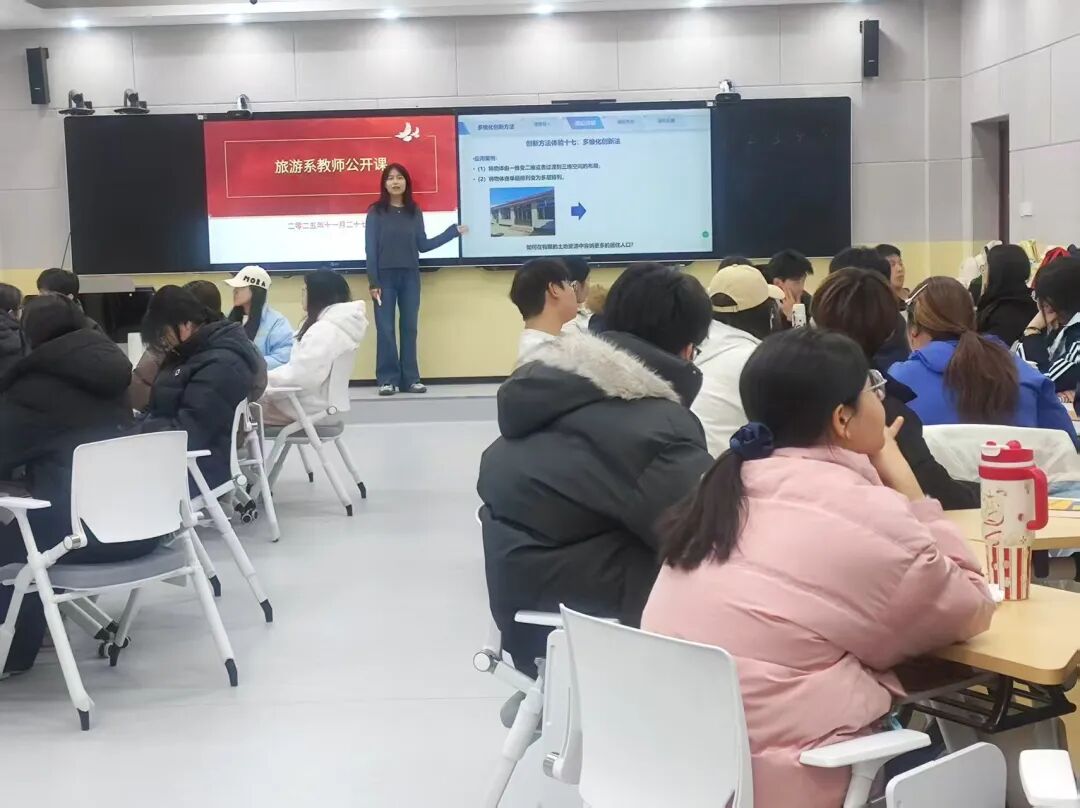 课后,吴殿勇主任与李莎莎副主任对本次公开课给予了细致点评,一致认为其授课形式与旅游系大力倡导的“项目化教学”高度契合,真正做到了“让学生站到课堂的中央”。在随后的交流中,六位新进青年教师也踊跃发言,分享了各自的听课体会。他们纷纷表示,此次公开课为今后教学提供了宝贵借鉴,并围绕如何在课程中有效融入思政内容、激发学生创新思维、以及结合专业特色设计项目化任务等方面,提出了诸多建设性意见。现场讨论气氛热烈,展现了旅游系教学团队积极反思、共同成长的良好氛围。未来,旅游系将继续深化项目化教学模式,鼓励师生在教育教学的道路上不断探索、勇敢实践,让每一个课堂都“活”起来。
