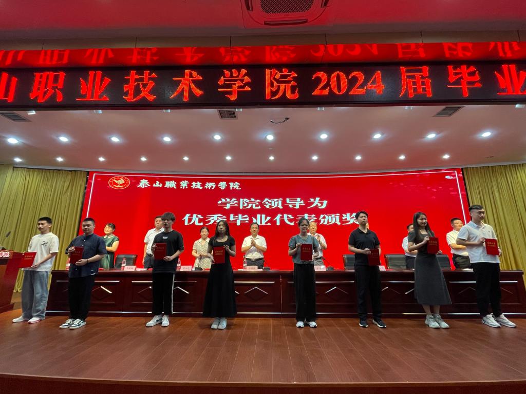 校领导、教师代表以及优秀毕业生代表相继上台发言,他们的话语中充满了对毕业生的肯定与祝福。党委委员、副院长王文林宣读省级及学院2024届优秀毕业生表彰决定,我系孙桦磊获省级优秀毕业生荣誉称号,张同旭获院级优秀毕业生荣誉称号。
