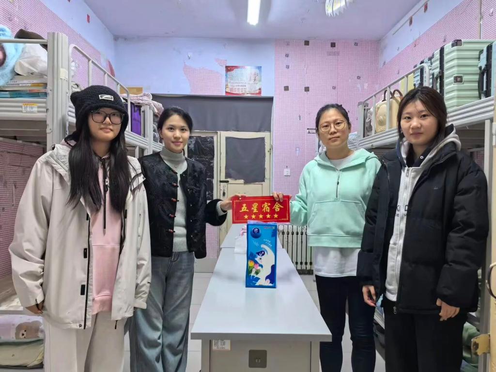 为进一步密切师生联系,全面了解旅游系学生宿舍生活情况,积极营造整洁文明、和谐温馨的住宿环境,11月6日下午,旅游系学生科科长王亚楠带领24级、25级班主任团队深入学生宿舍开展走访,并同步组织“五星宿舍”评选,对获评宿舍予以表彰并赠送专属礼品。