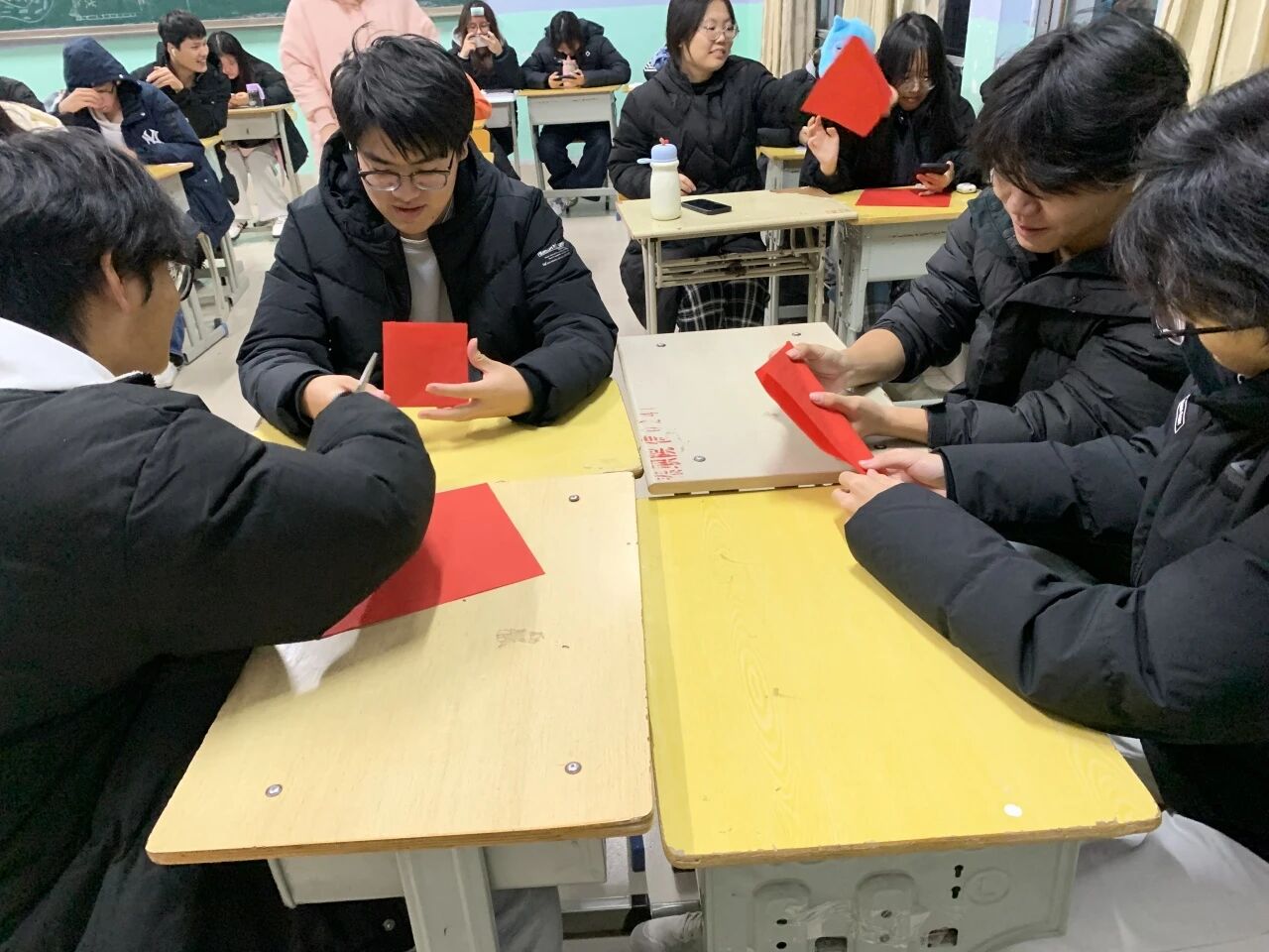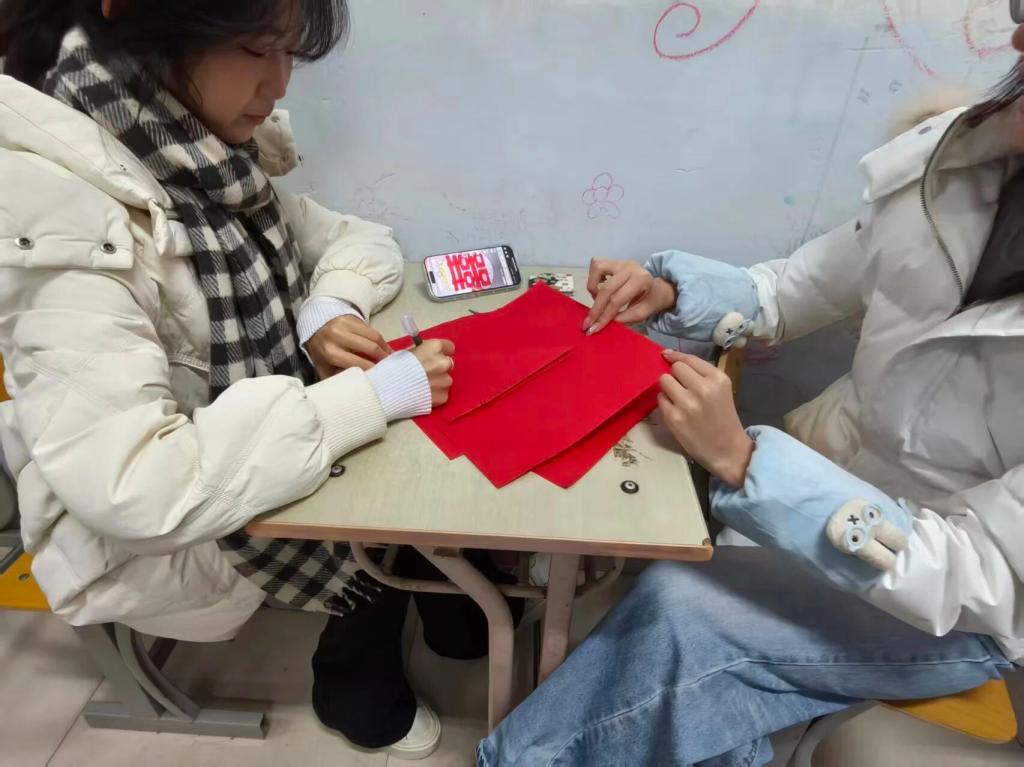 创作环节里,红纸在同学们手中翻转,剪刀上下翻飞,福字、花鸟等吉祥纹样跃然纸上。大家边剪刻边交流技巧,从起稿到修边,每一步都凝聚巧思,普通红纸化作一件件创意作品,现场创作氛围浓厚。