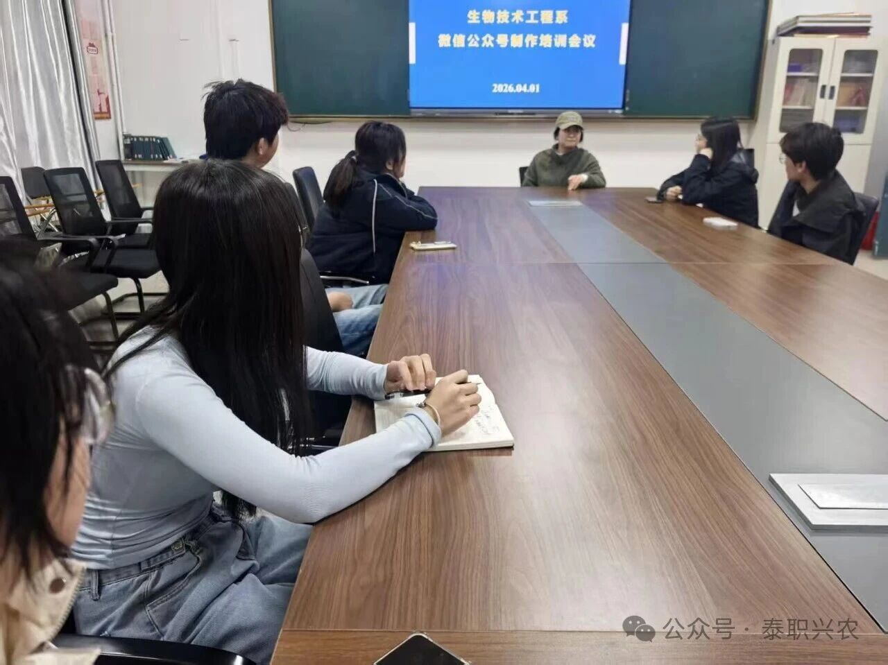 2026年4月1日16:00,我系在305会议室召开公众号制作培训会议,邀请王姣姣科长担任主讲人,围绕公众号“焕新升级”展开深度研讨,精准戳中运营痛点并敲定优化大招,具体内容如下: