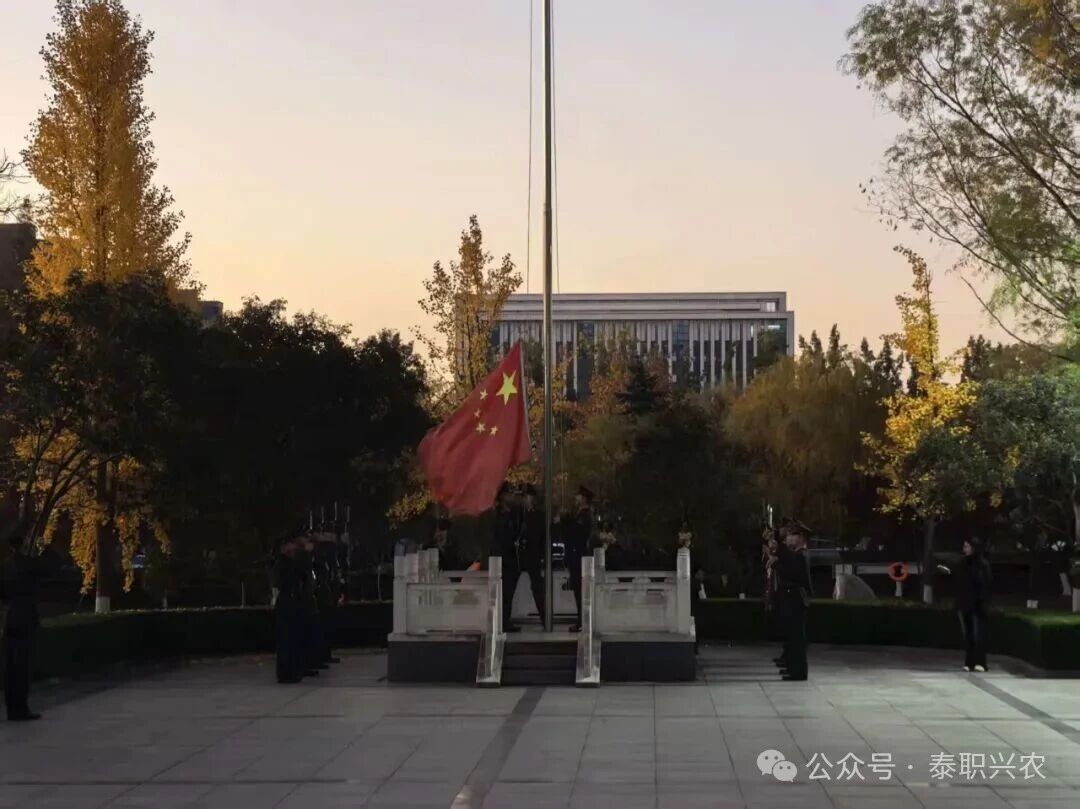 当清晨的霞光铺洒大地,当雄壮的国歌响彻云霄,五星红旗迎着朝阳冉冉升起。2025年11月10日,在这个特殊的日子里——中国人民解放军空军建军节的前一天,生物系2025级全体同学以最庄严的仪式集结,主持人2025级生物技术工程系食品食品检验检测班刘堃煜及秦增荣同学带领全体同学仰望国旗、致敬蓝天,向守护家国长空的空军将士们致以最崇高的敬意。