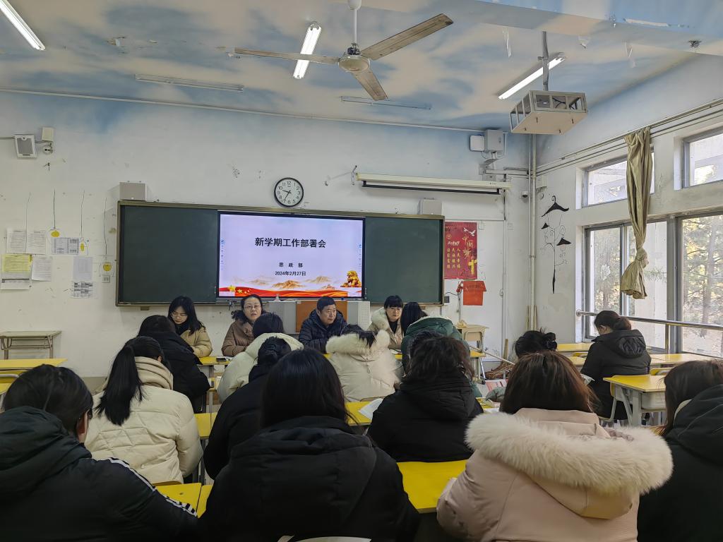 会上,苗主任总结了2023年思政部取得的一系列成绩,对各位教师的付出给予充分肯定。同时,她强调新学期新起点,期望各位教师在2024年不骄不躁、踏实前行,在新学期有新的突破;随后,苗主任传达了学院各项会议精神,尤其强调思政部教师要抓好开学第一课,关注学生的学习力,促进教学相长。