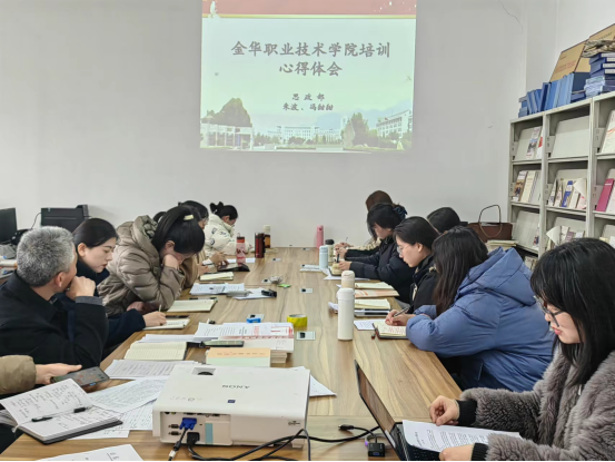 学习交流会上,朱波科长和冯甜甜老师结合自己赴金华职业技术学院中学习的所见、所思、所得向大家做出交流汇报。