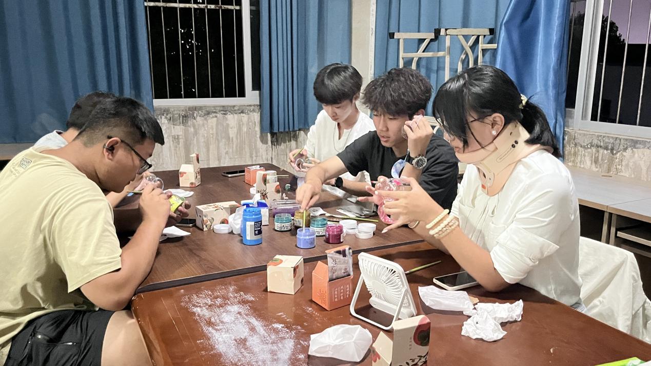 活动开始,组织者为同学们分发了纯色的风铃、五彩的颜料和画笔。同学们围坐在一起,将自己的心境与创意倾注于笔尖。有的画下象征宁静的蓝天白云,有的绘出代表希望的向阳花朵,还有的同学写下了对自己的鼓励和未来的期许。每一个风铃都成为了独一无二的“心灵艺术品”。