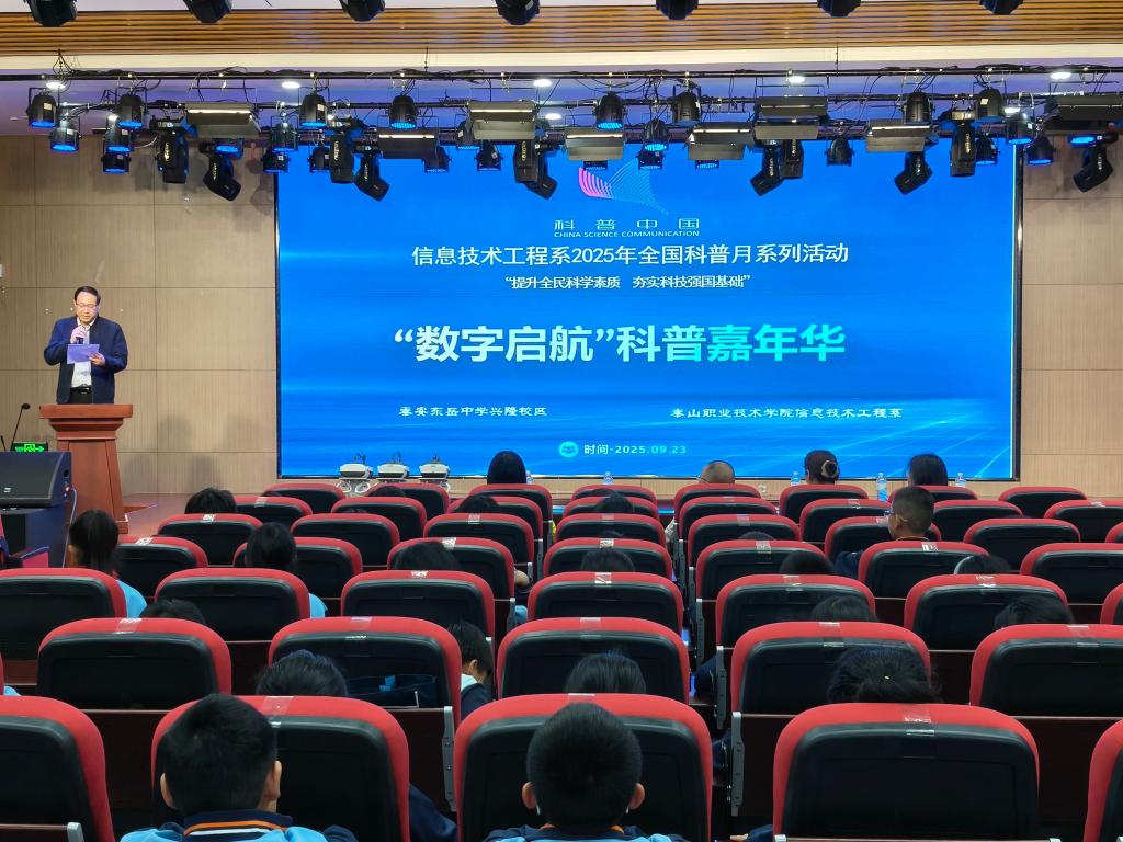 9月22日下午,信息技术工程系携手东岳中学兴隆校区,共同举办“数字启航”科普嘉年华活动。信息技术工程系党总支书记辛显雪、教师代表及东岳中学兴隆校区分管德育工作校长、师生代表共同参与,以沉浸式体验推动科普知识落地,助力青少年科学素养提升。