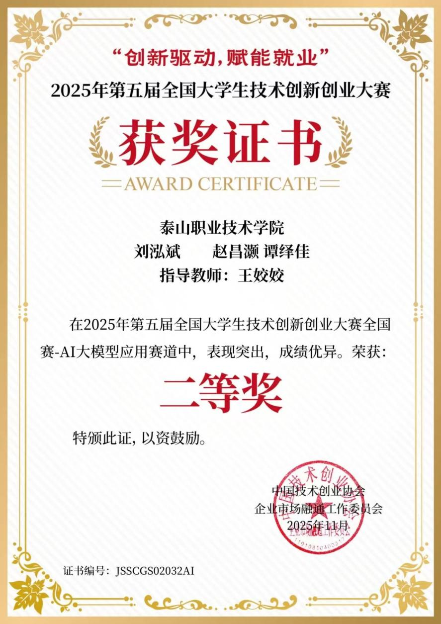 本次大赛由中国技术创业协会指导、中国技术创业协会企业市场融通工作委员会主办,以“创新驱动,赋能就业”为核心宗旨,是国内高校创新创业领域的重要赛事。此次获奖不仅是“以赛促学、以赛促教”育人理念的成功实践,更印证了信息技术工程系在项目孵化、团队培养及学科交叉融合方面的扎实成效,成为系部创新创业教育发展历程中的重要里程碑。