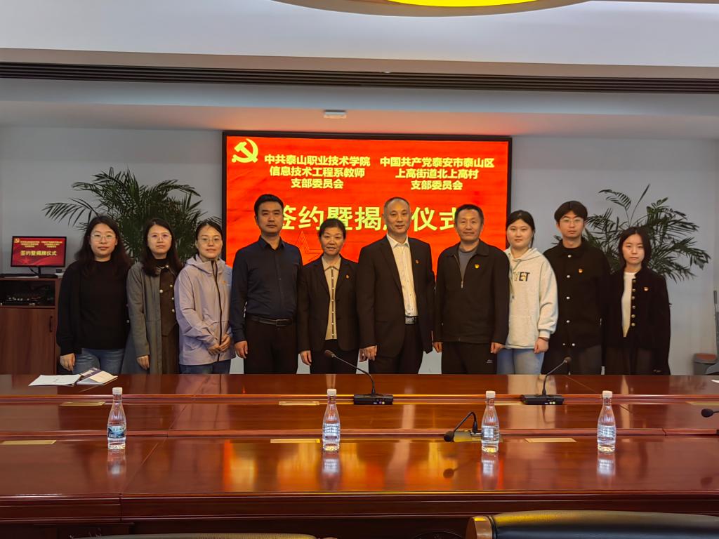 2025年5月,继首个“双带头人”工作室实践基地成功运行并收获积极反响后,信息技术工程系“双带头人”教师党支部书记工作室再结新对,与泰山区上高街道北上高村正式签约,挂牌成立第二个实践基地,标志着校地合作模式经历了实践检验,进入了快速复制与深化拓展的新阶段。