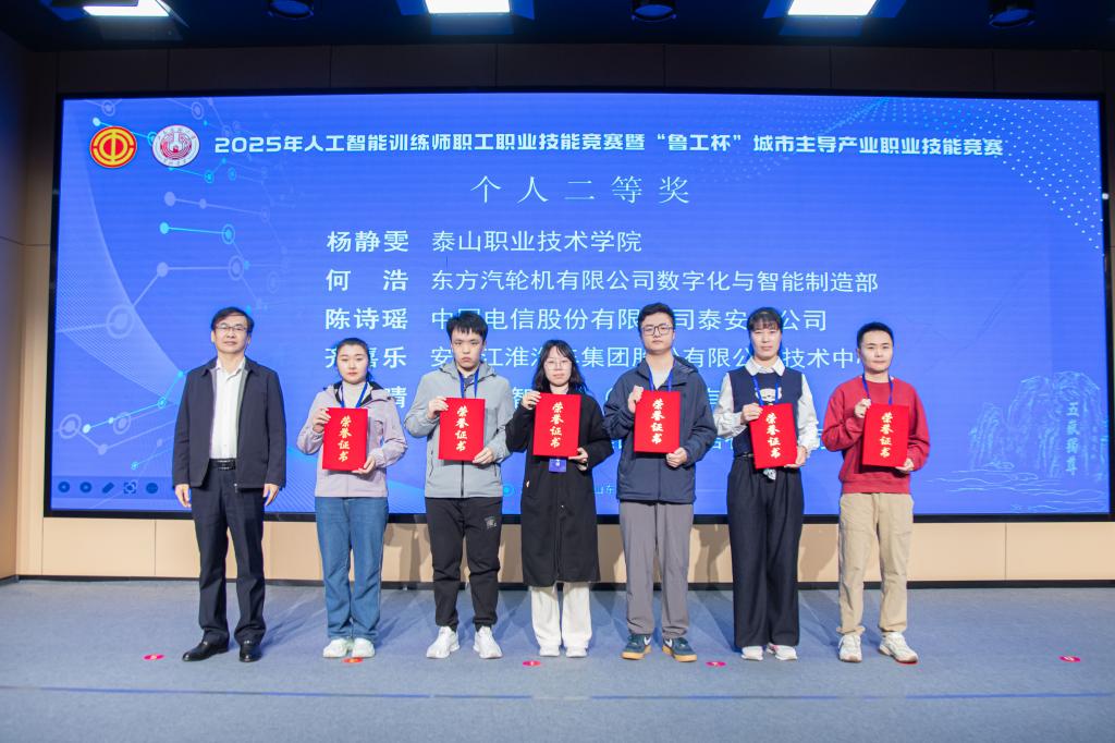 10月30日-31日,中国机械冶金建材工会、山东省总工会、山东省发展和改革委员会、山东省工业和信息化厅、山东省人力资源和社会保障厅主办,山东省国防机械电子工会、泰安市总工会、泰安市数字经济产业链专班承办,泰山职业技术学院、泰安高新区总工会、泰安市机械电子工会、泰安市泰山数字经济工匠学院协办的2025年人工智能训练师职工职业技能竞赛暨“鲁工杯”城市主导产业职业技能竞赛在我院成功举办并圆满落幕。本次大赛经过激烈角逐,各项赛程顺利完成。