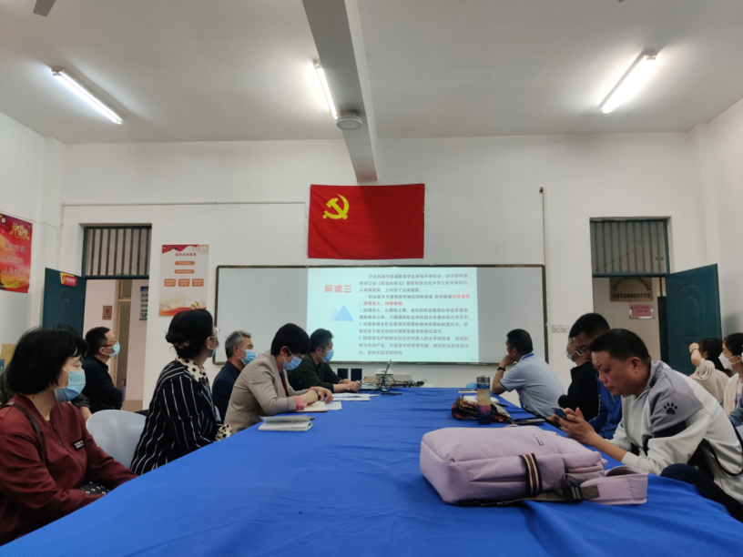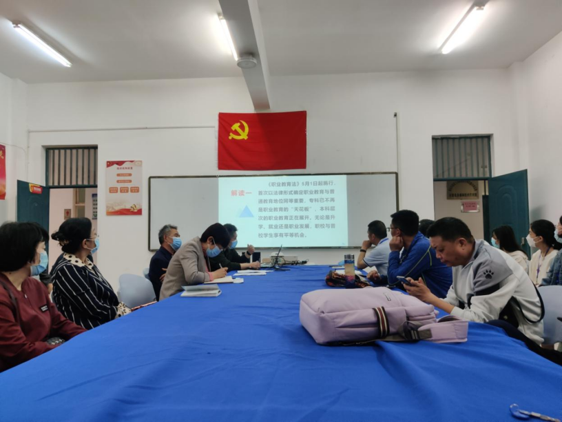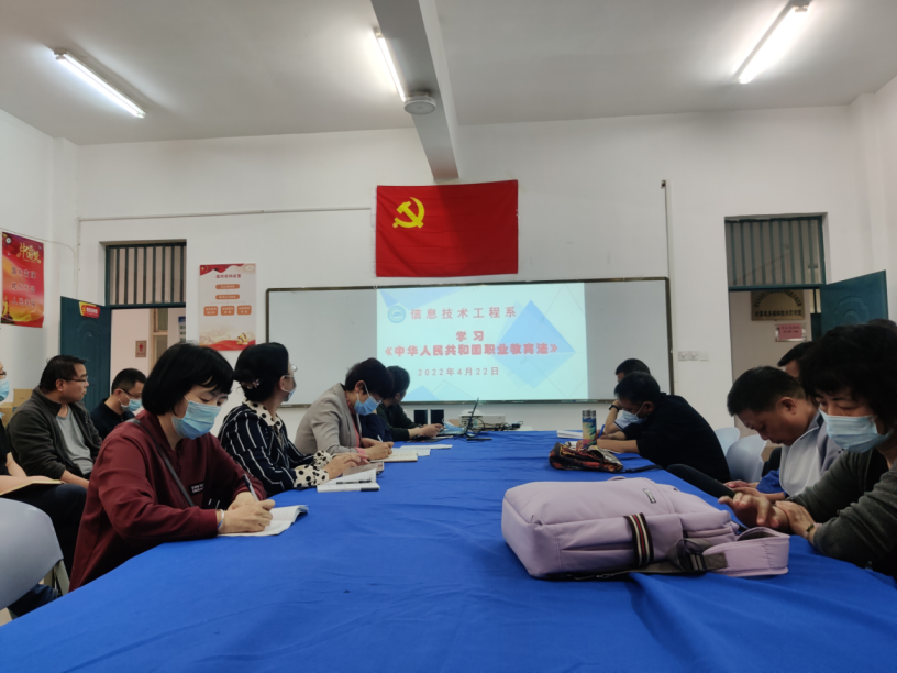 2022年4月24日下午4:30,信息技术工程系在思汗楼203会议室召开全系教职员工会议,专题学习《中华人民共和国职业教育法》。会议由信息技术工程系党总支书记张新刚主持。