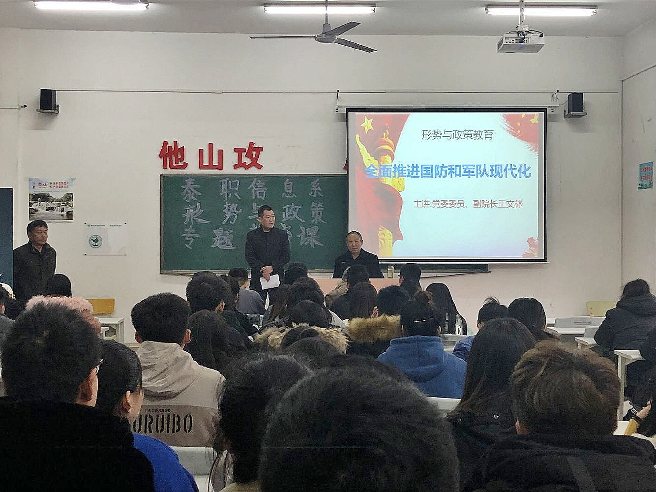 11月20日下午,信息技术工程系在思汗楼107室举办形势与政策专题教育讲座。党委委员、副院长王文林主讲,学生干部骨干60余人参加。