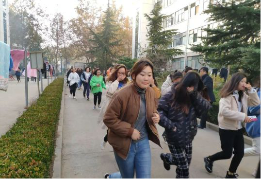 2019年11月14日下午我系根据学院安排举行逃生演练