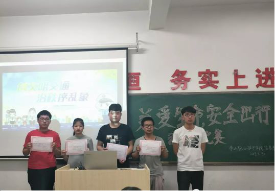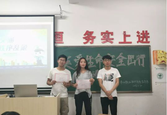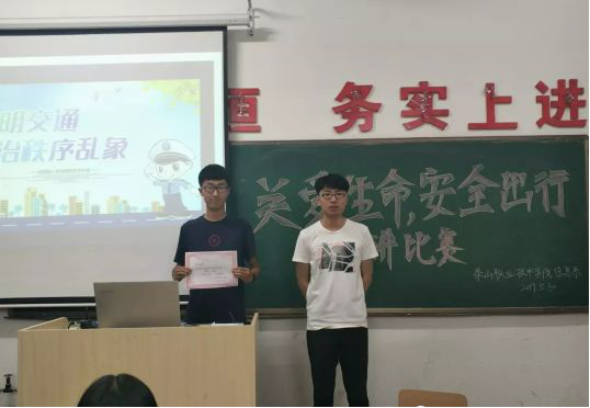 为提高同学们的道路交通安全意识,提醒大学生自觉遵守交通安全法律法规,信息技术工程系于2019年5月29日晚19:00在思汗楼404教室举行“关爱生命,安全出行”交通安全演讲比赛。