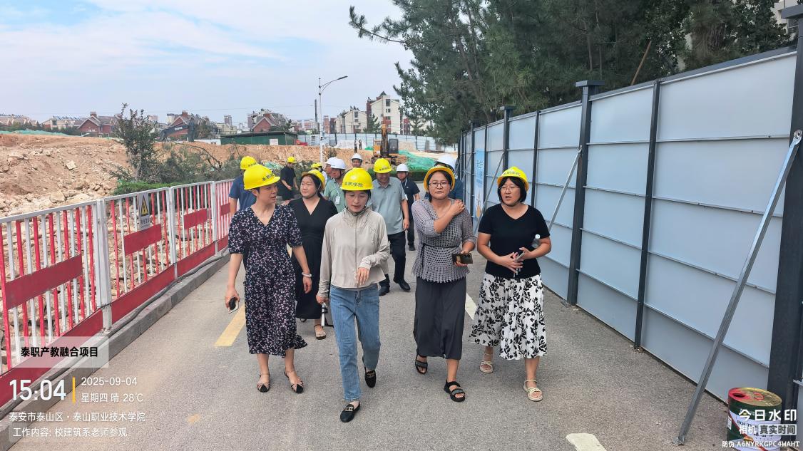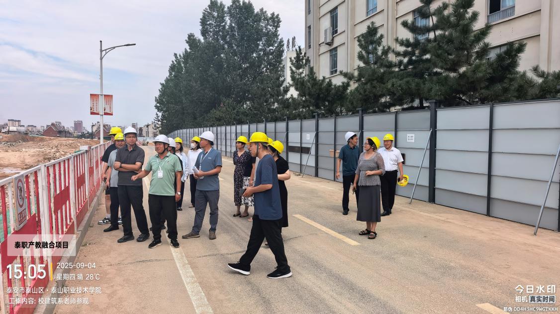 2025年9月4日下午3点纪茂全科长带领建筑系老师参观泰山职业技术学院产教融合综合实训中心项目建设工地现场。