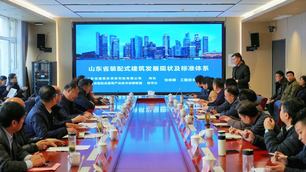 范玉文副校长介绍了学校校企合作、产教融合办学成果。山东省建筑科学研究院专家作《山东省装配式建筑进展及标准体系》专题报告,解读装配式行业发展趋势与标准体系。相关企业代表分享在装配式一体化施工技术应用方面的实践经验。