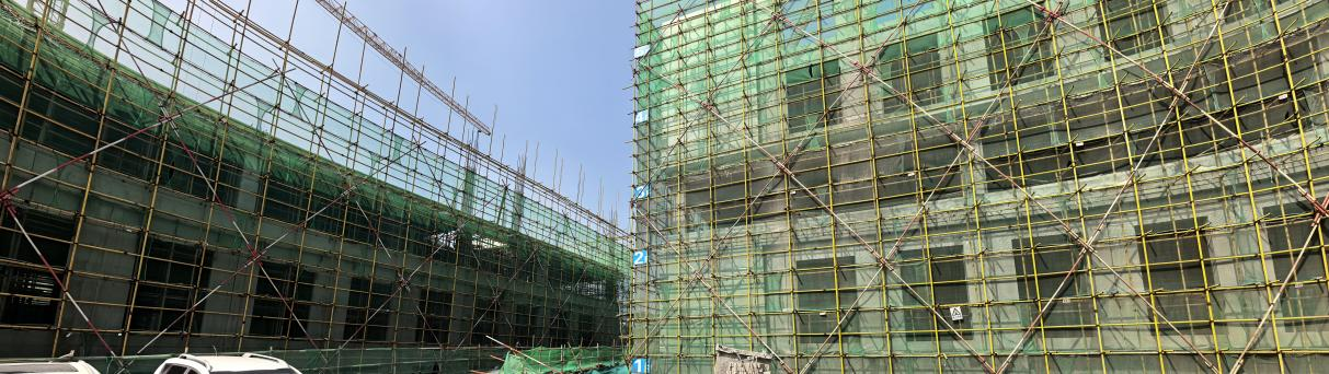 一标段:1#楼、2#楼物料清理;8#楼屋面网架检修通道安装完成,内墙腻子找平已完成85%,幕墙施工已完成36%,楼地面施工已完成27%,排球厅金属板屋面施工已完成10%。
